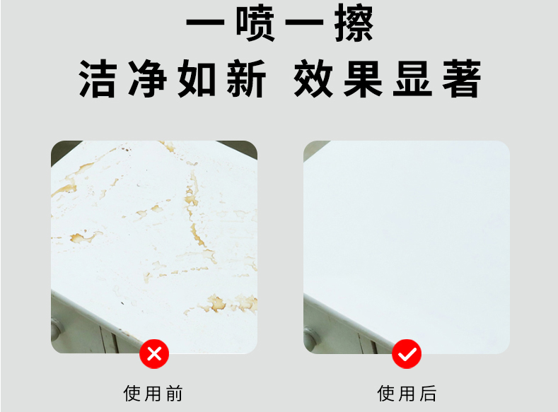快速除垢 省时省力对着清洁表面直接喷酒,即可快速分解污垢使污垢自动剥离
