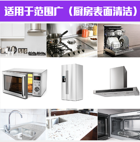 可用于换气扇、微波炉、厨房、洗手间、乙烯基布等周围的油渍。
