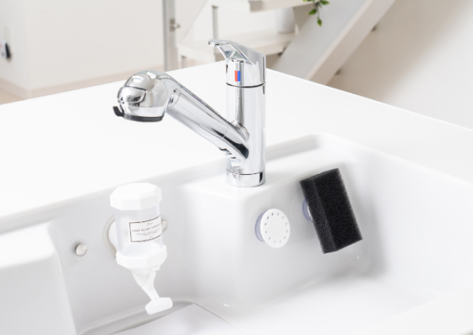 清洗水槽周围很麻烦吧例如。不小心,想要移开眼睛的海绵架(架子)上积累的水垢水槽内杂乱无章每天的餐具清洗海绵的吸水性能差,干燥不卫生餐具用·锅用·水槽用·宠物餐具用和海绵的放置处有问题