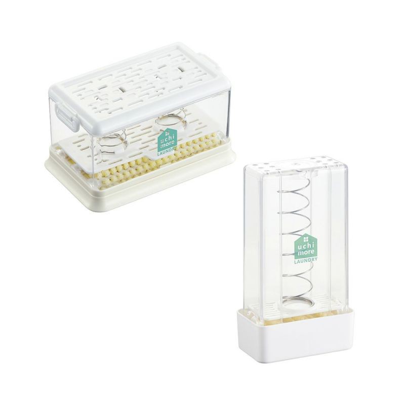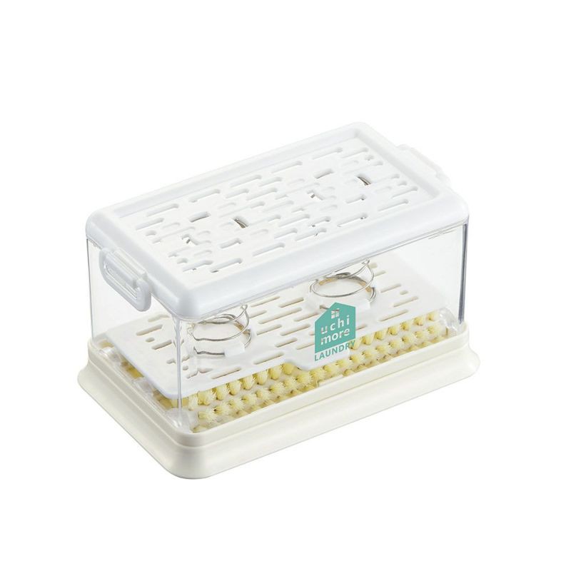 ●这款多功能皂盒用途广泛,从存放肥皂到清洗衣物,一物多用!●弹簧盖可牢牢锁住细小的肥皂颗粒!●盖子带有通风孔,方便晾干。●即使潮湿,放在托盘上也能防止污渍,保持周围区域清洁。●附带的刷子可产生丰富泡沫。●适用于衣领和袖口、儿童衣物、室内鞋、袜子、制服等。●<使用方法> 1. 打开盖子。2. 取下盖子。3. 加入洗衣皂。4. 盖上盖子,即可使用!●适用肥皂尺寸:最大 10.5 x 6.5 x 3.5 厘米 ●<使用方法> 1. 用水彻底浸湿衣物。2. 将皂盒弄湿。3. 左右旋转皂盒刷子一侧,即可搓洗衣物。 ●使用后,用水冲洗外壳并沥干水分。存放前,请将其放在附带的托盘上。