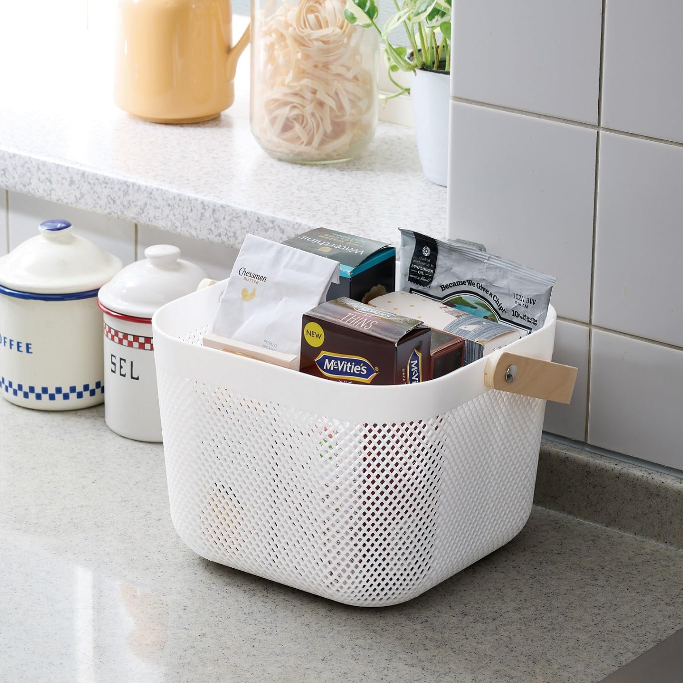 网状设计透气性极佳!这款便捷的收纳篮用途广泛,可用于存放玩具、化妆品、零食、饮料、厨房用品、浴室用品、公共卫生间用品等等。