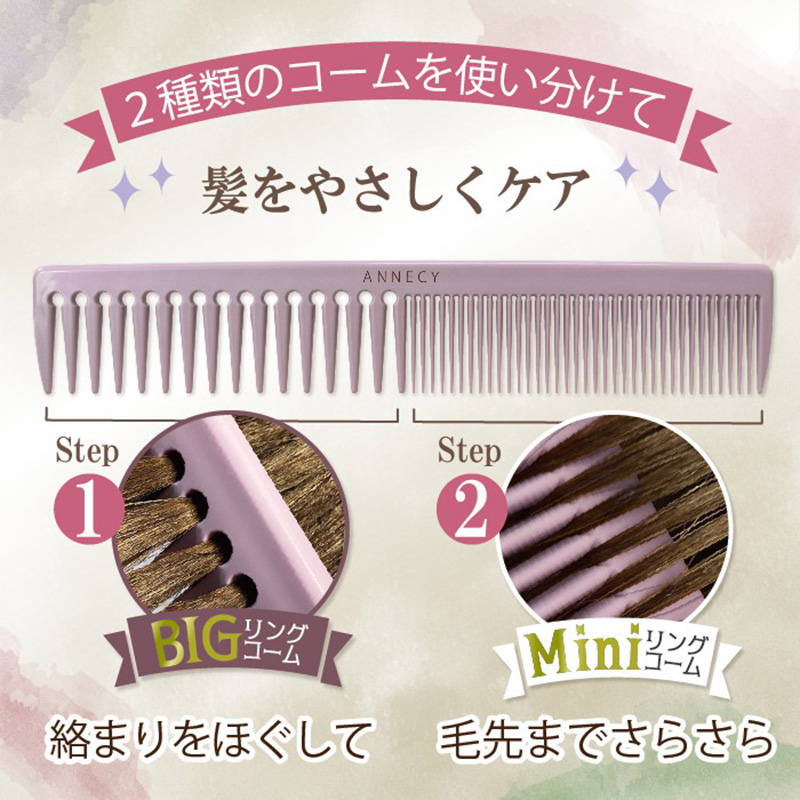 第二步:使用小号环形梳,顺滑地梳理至发梢。