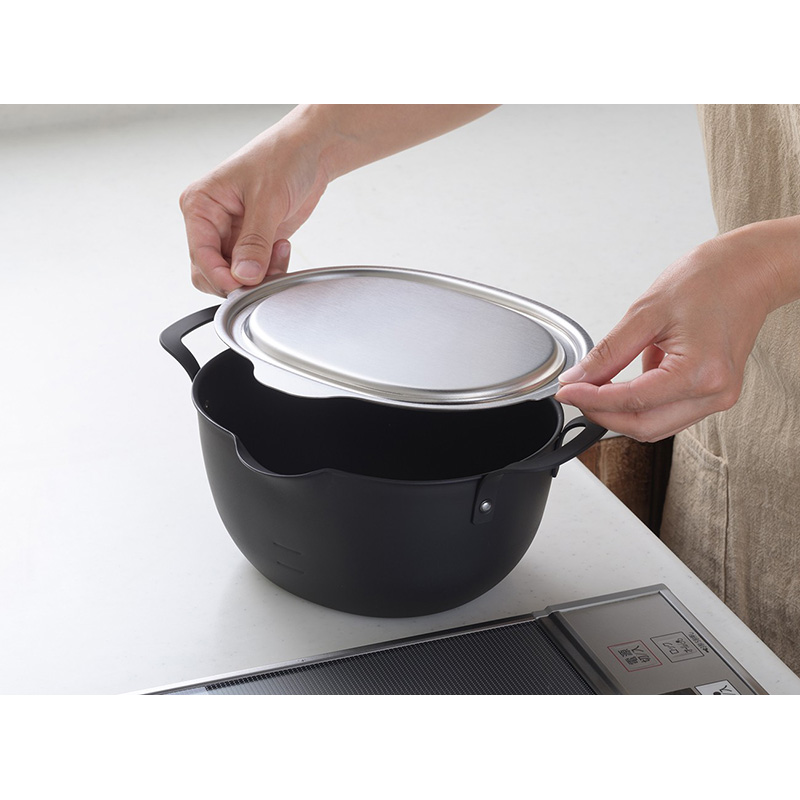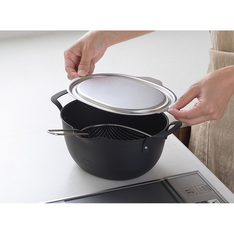・翻转锅盖,即可用作备餐和煎炸的托盘。