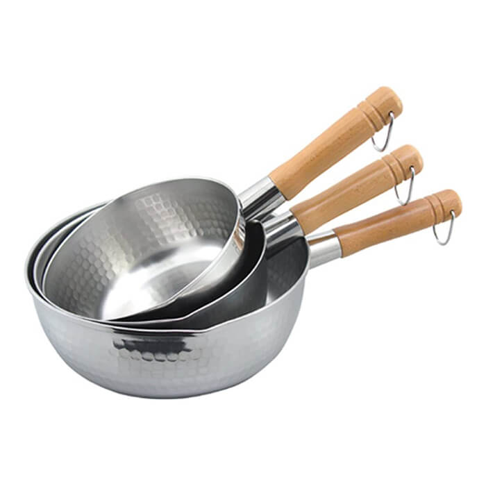锤纹锅。方便的双侧壶嘴,倾倒轻松。木质手柄,握感舒适稳固。
