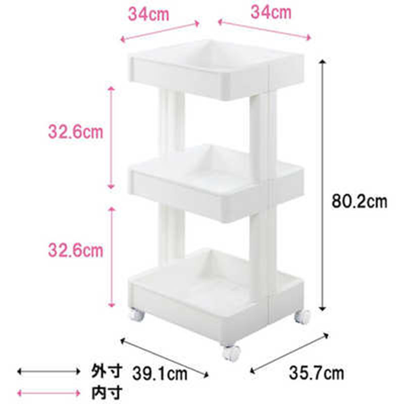 中央立柱方便从两侧取放物品。底部滚轮使其可以轻松向各个方向移动,清洁起来也十分便捷。它采用三层开放式设计,并以舒缓的灰色,白色2色调。无需任何工具即可轻松组装。