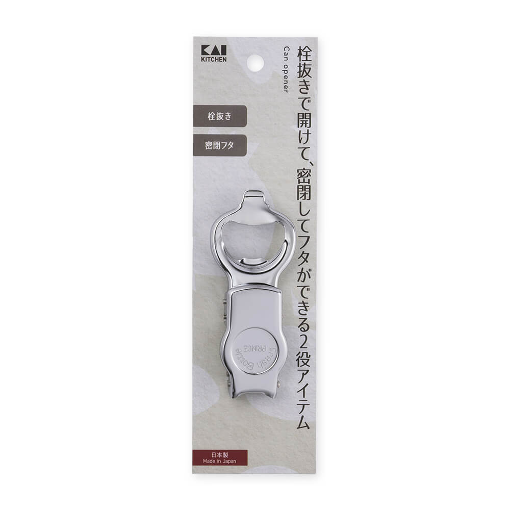 这款二合一开瓶器可以打开罐头、密封罐口并盖上盖子。(日本制造)