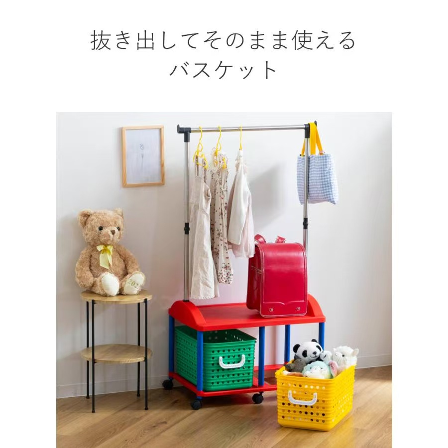 衣架和小物品收纳集于一体的管道衣架。在孩子可以自己挂衣服的高度设置了衣架杆,支持“自己想做”的孩子的自立心。衣服和书包等上幼儿园、上学需要的东西可以一起收纳,这一个孩子就可以自己整理好自己。