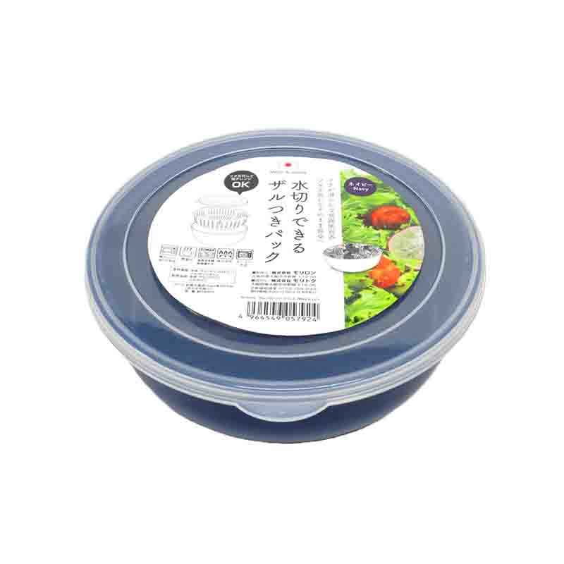 MORITOKU日本可沥水带漏网保鲜盒收纳盒580ML 蓝