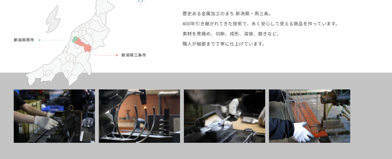 公司其根源在于三条刀匠工艺。继承150年的制造技术,并加以发展和进步。自 1874 年作为三条刀匠创立以来,下村集团并非孤军奋战。多年来,我们与燕三条的许多工厂和工匠共同成长。我们的优势是长年培育的制造技术以及新颖灵活的商品化知识,赢得了众多客户和合作工厂的信赖。即使在这个经济萎缩、社会多元化的变革时代,我们仍将继续努力为顾客带来笑容。