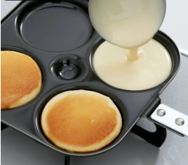 迷你热蛋糕&大号烤盘一次可以烤4个小薄饼烤好的尺寸是直径8厘米2个可以享受夹心饼干或奶油等夹心的甜点