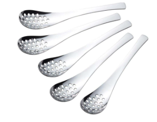 黄芪勺孔洞5本组在只舀锅料理、汤豆腐、拉面等的配料时如玉米罐等,在舀取时也很方便