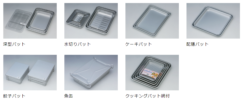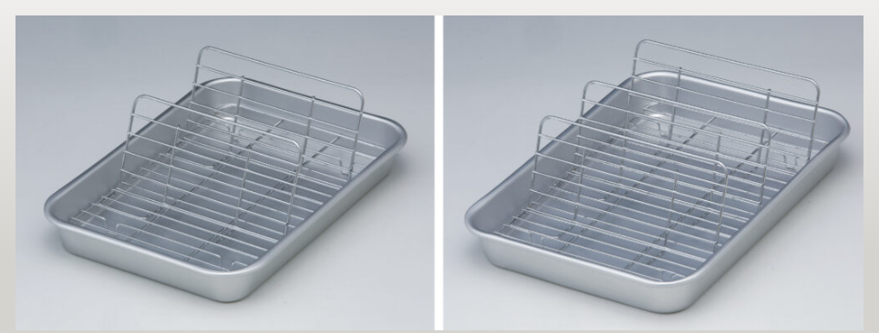 除去油脂和水分外,还附有脚,可以用来取出制作和盒饭的配菜的粗热,也可以用作手工点心和面包等的冷却器。使用耐腐蚀性和耐磨性优异的铁铬镀层。