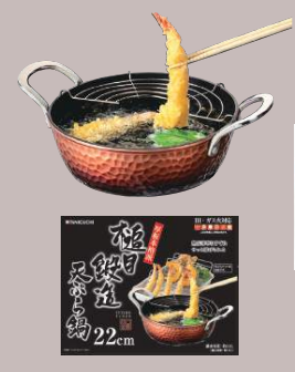 通过将油炸物立起来,油会迅速流畅地滴落使天妇罗锅变得酥脆。多余的油会掉下来,健康地完成。由于是深型铝箔,在急速冷冻·解冻方面表现出色,因此除了油炸食品外,也能派上用场。