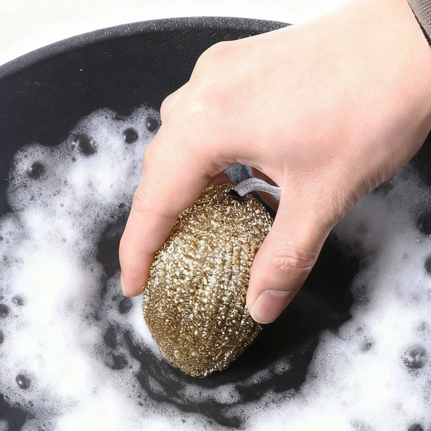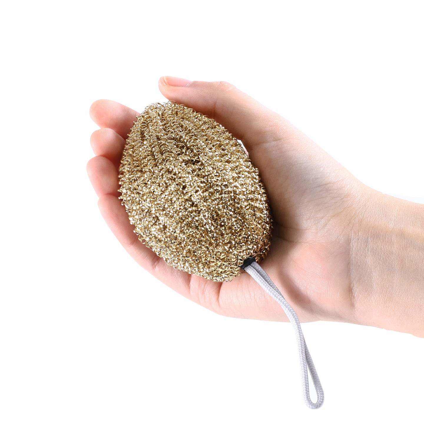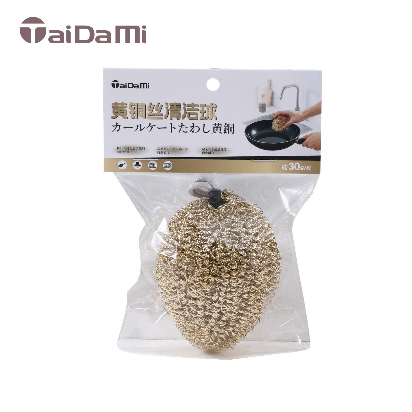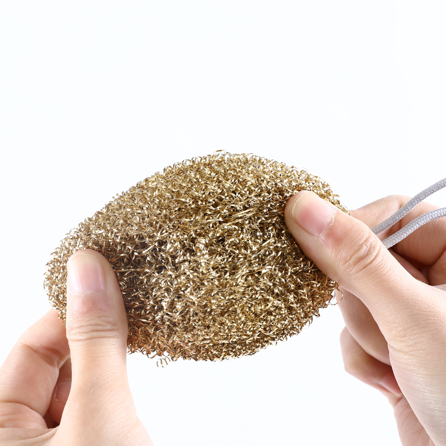 黄铜清洁球材质好不易锈、去污强还不伤器具,少掉渣更卫生,颜值高且用途广,耐用又实用。