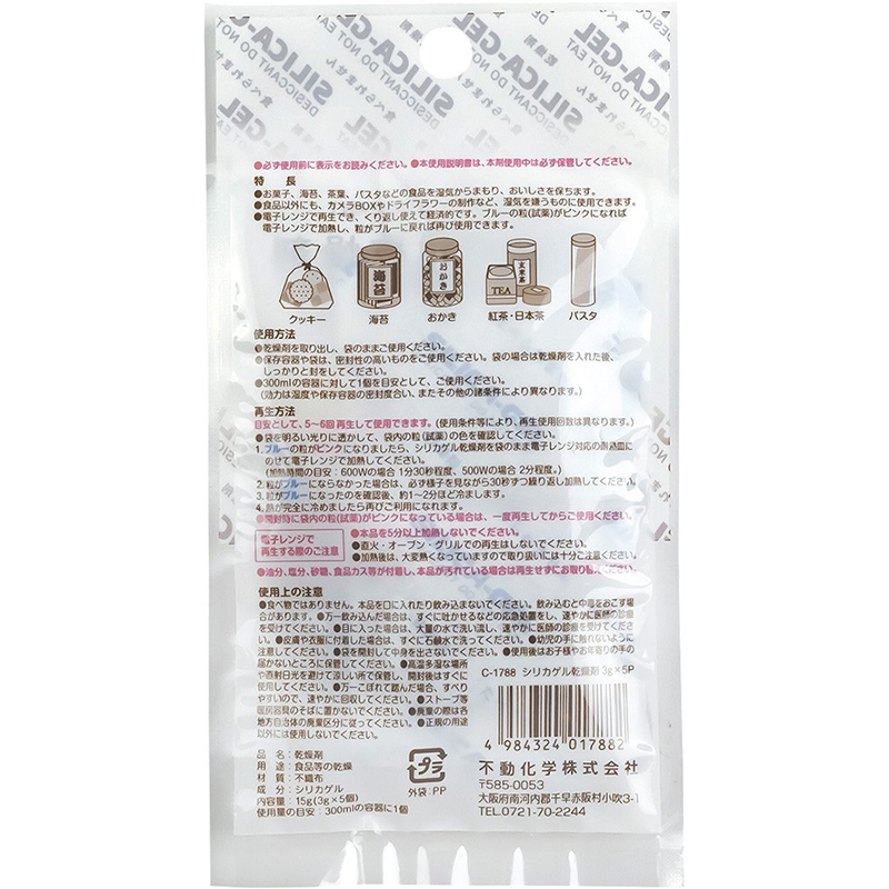 此款干燥剂可微波炉回收,可重复使用,经济实惠!当蓝色颗粒变成粉色时,放入微波炉加热。颗粒恢复蓝色后即可使用。建议使用量:每300毫升容器1包。