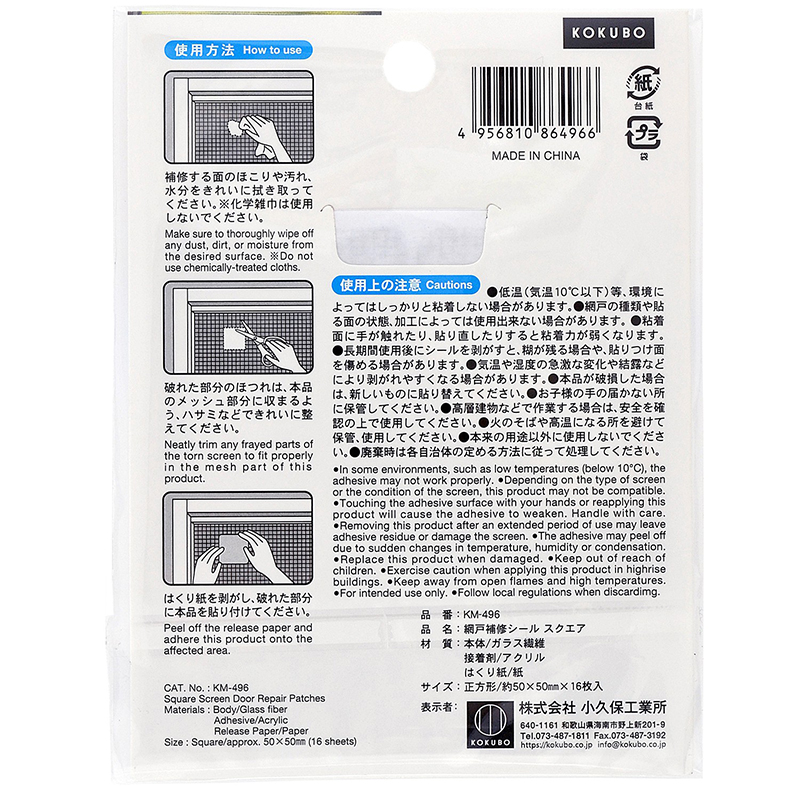 KOKUBO日本纱门破洞修补贴纸混尺寸18 片装