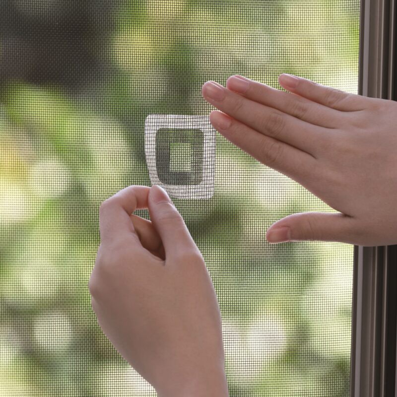 只需将此贴纸贴在纱门上的任何孔洞或撕裂处即可。此贴纸可以修补纱门上的孔洞。