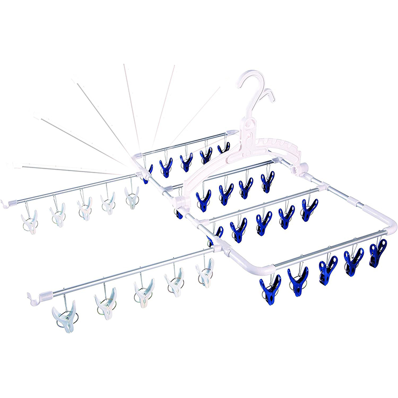 A室内晾衣翼铝制通风衣架,30夹,蓝色