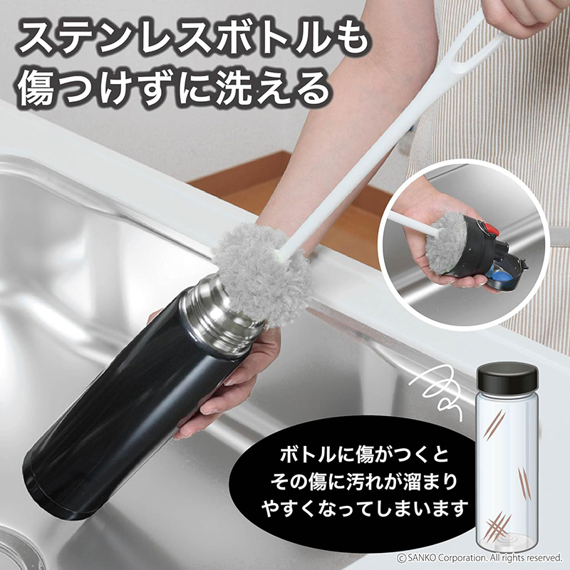 ◆清洁部分采用纤维制成,因此可以深入饮水机和不锈钢水瓶的底部及角落,彻底清洁。