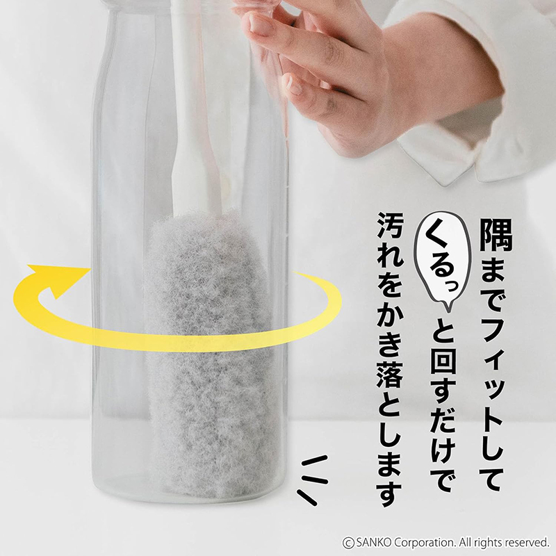 SANKO日本适用于随身水杯的爆炸头清洁刷(GY)