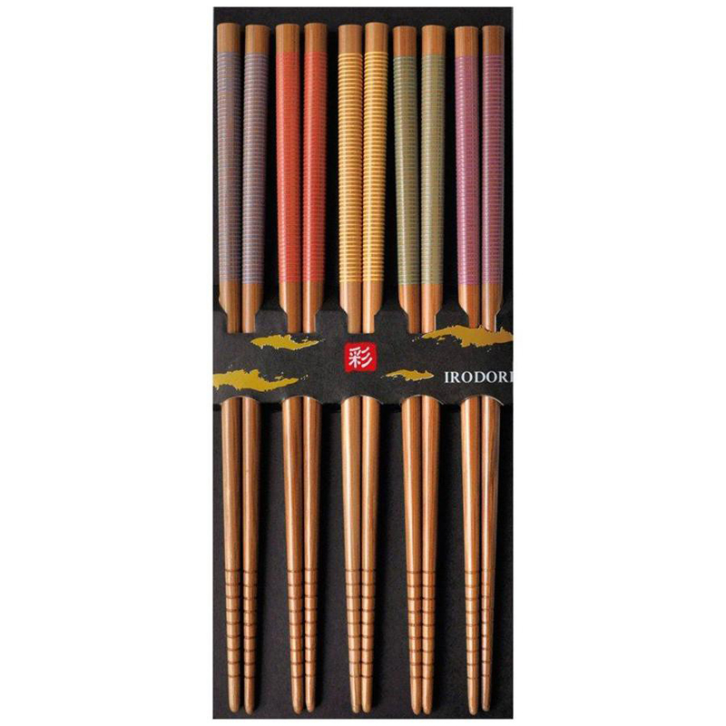 漆面防滑筷子,22.5厘米,5双装,竹制,烟熏竹色,旋律设计,日本制造。