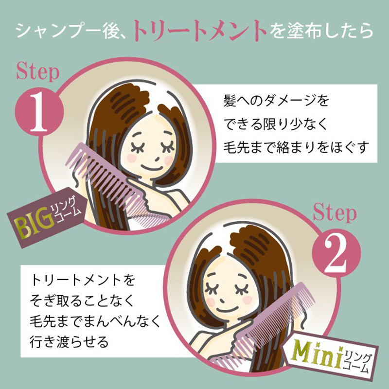 第二步:使用小号环形梳,顺滑地梳理至发梢。