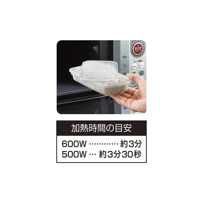 这套两个装的保鲜盒可存放一份米饭(约200克),方便冷冻保存。方形设计便于存放和堆叠。只需取下盖子,放入微波炉解冻即可。*请勿使用功率超过700瓦的微波炉。