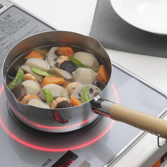 锅用途广泛,可用于制作味噌汤、日式高汤等。它配有宽大的壶嘴,方便沥水。