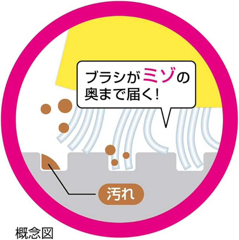 例如浴室地面。5毫米长的尖头刷毛可以深入缝隙,刮除顽固的水垢和污垢。